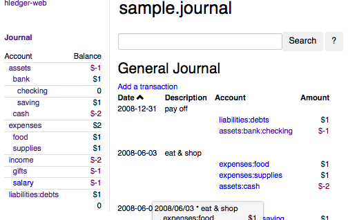 site: some hledger-web/sample.journal screenshots