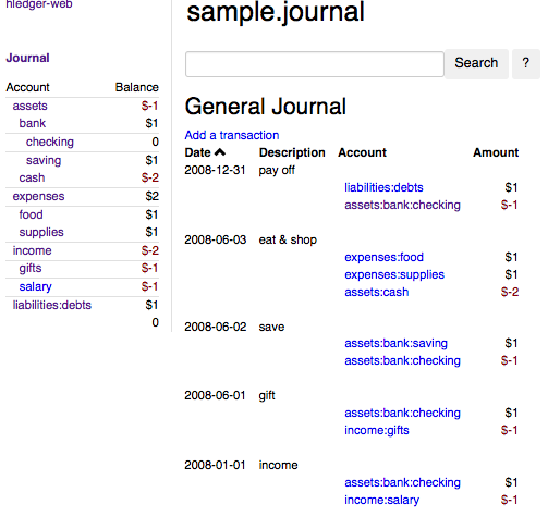 site: some hledger-web/sample.journal screenshots